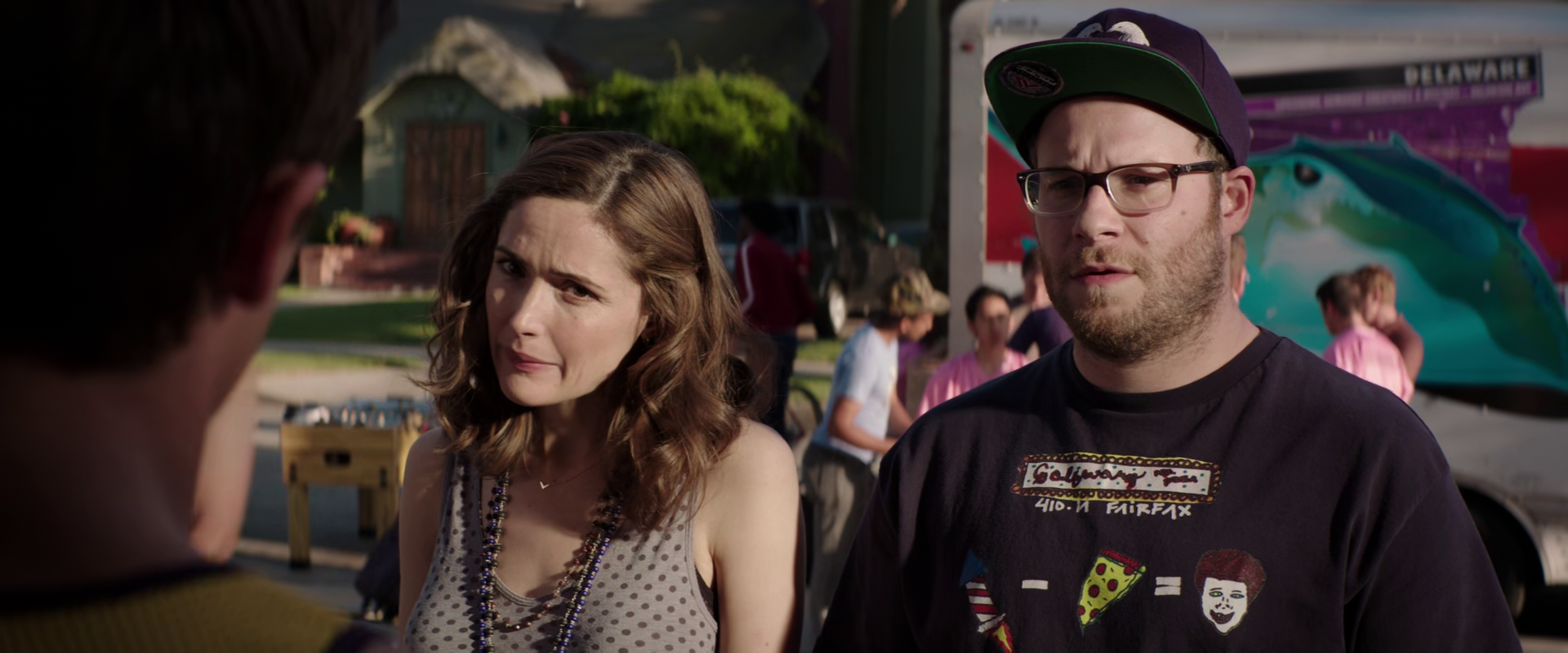- 👉 Сцена с ребенком оборачивающимся, чтобы посмотреть на занимающихся сексом Мака и Келли, была снята случайно. Первоначально сцена должна была закончиться, когда Мак переворачивал Келли, но режиссер заметил любопытство ребенка и поручил одному оператору снять его в этот момент. По словам режиссера, если внимательно прислушаться, то можно разобрать на фоне смех Сета Рогена и Роуз Бирн в момент, когда ребенок поворачивается, чтобы увидеть их.